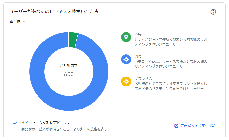 さらに、インサイトでアクション数の分析を行うと、潜在客の動向を分析することができます。この機能により、潜在客の動きがわかることもGoogleマイビジネス(※)のメリットです。 お店の場合、以下の3点から「お店をどうやって見つけたのか」がわかります。