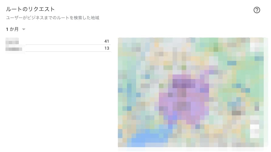 ルートのリクエストでは、店舗までのルートを検索したユーザーの数が表示されます。また、どの地点から検索したのか都市や地域ごとに検索回数の合計が表示されます。