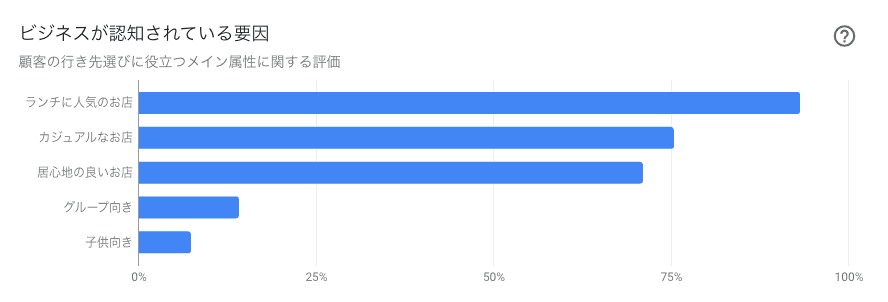ビジネスが認知されている要因では、ビジネスがレストランやカフェなどの場合、ユーザーの意見を確認できます。