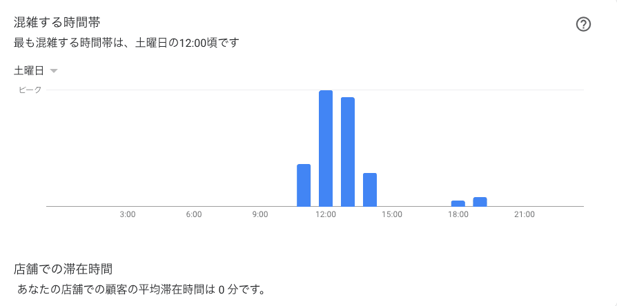 混雑する時間帯では、各曜日ごとに混雑する時間帯と店舗での平均滞在時間が表示されます。