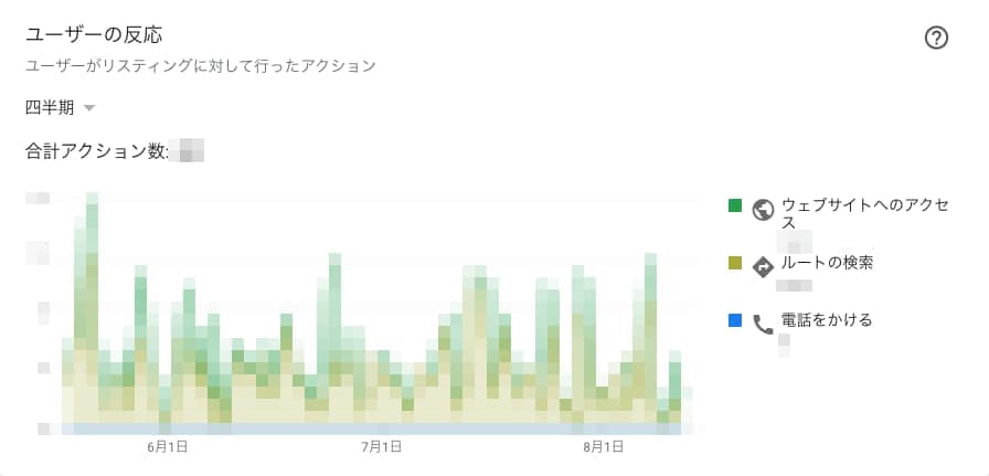 ユーザーの反応では、ユーザーがGoogleでビジネスのリスティングを見つけてからどのような行動をとったかを確認できます。