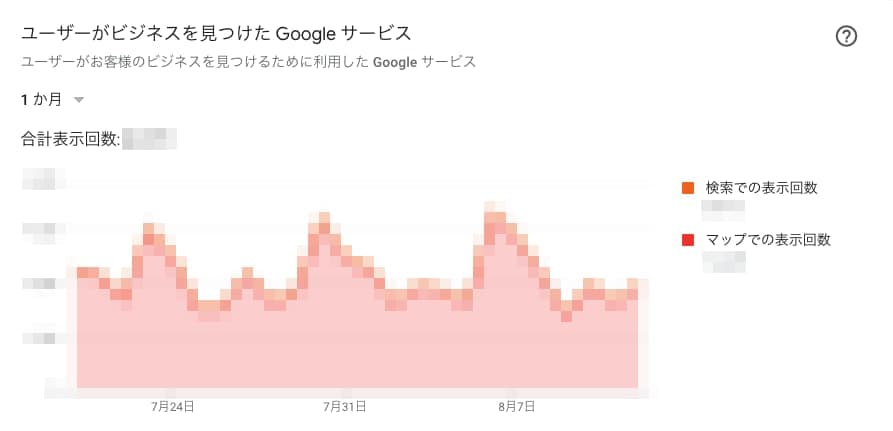 ユーザーがビジネスを見つけたGoogleサービスでは、Google検索やGoogleマップで自身のビジネスを見つけたユーザー数を確認できます。
