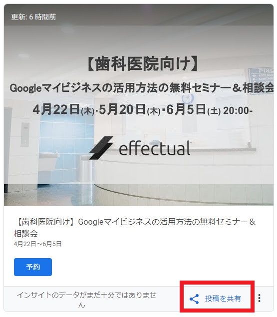この投稿をクリックすると、Googleマイビジネス(※)の「投稿ページ」に移動します。