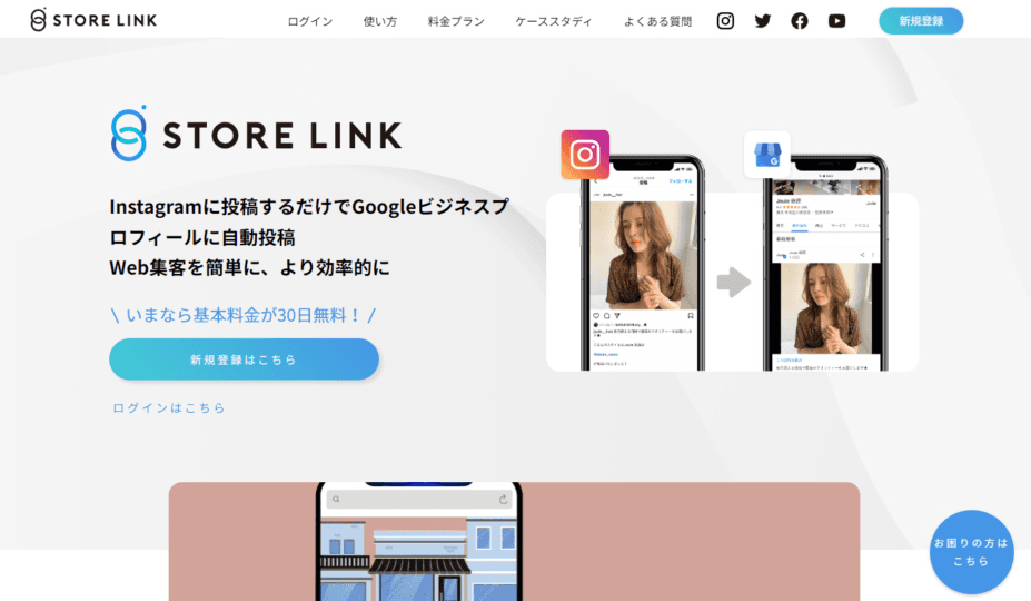 https://store-ship.com/link/ STORE LINKはInstagramとGoogleビジネスプロフィールの連携に特化したサービスです。Instagramを投稿すると、Googleビジネスプロフィールに自動投稿させることができるようになります。 オプション契約で複数のInstagramアカウントや複数のGoogleビジネスプロフィールとの連携も可能。小規模からリーズナブルに活用できるツールです。