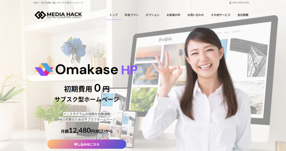 https://media-hack.com/ MEDIA HACKは、サブスクリプション型のホームページ提供サービスです。ホームページとの連動により、Instagramで投稿した内容をホームページやGoogleビジネスプロフィールに連動投稿させることができます。 オプションで運用代行サービスなども利用できるため、初心者の方やサポートを必要とするかたにも利用しやすいサービスです。
