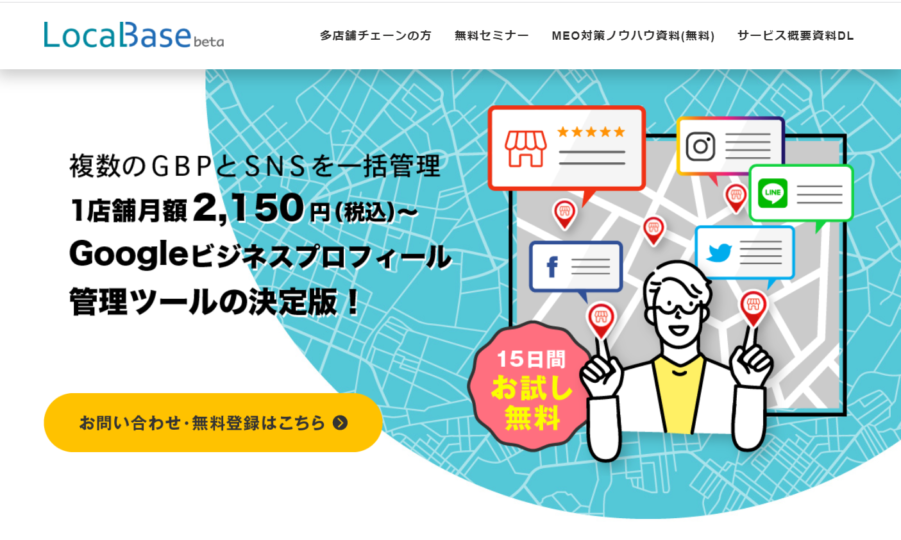 https://local-base.net/ LocalBaseは複数のGoogleビジネスプロフィールと各種SNSを一元管理できる、Googleビジネスプロフィール管理ツールです。Googleマップの情報改ざんを自動防止する機能や、地域やブランドごとにグループ化して管理・分析を行える機能なども。 GoogleビジネスプロフィールとInstagramアカウントを紐付けることで、Googleビジネスプロフィールからの同時投稿や予約投稿などが可能となります。