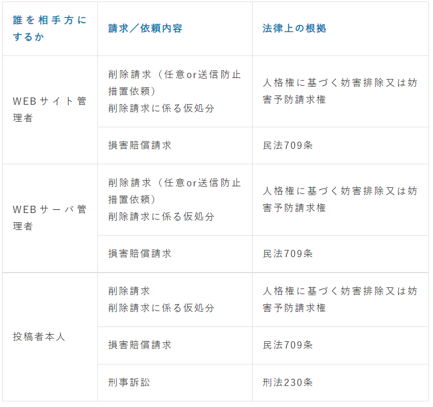 - 削除訴訟(通常、削除訴訟にまで発展するケースは少ない)